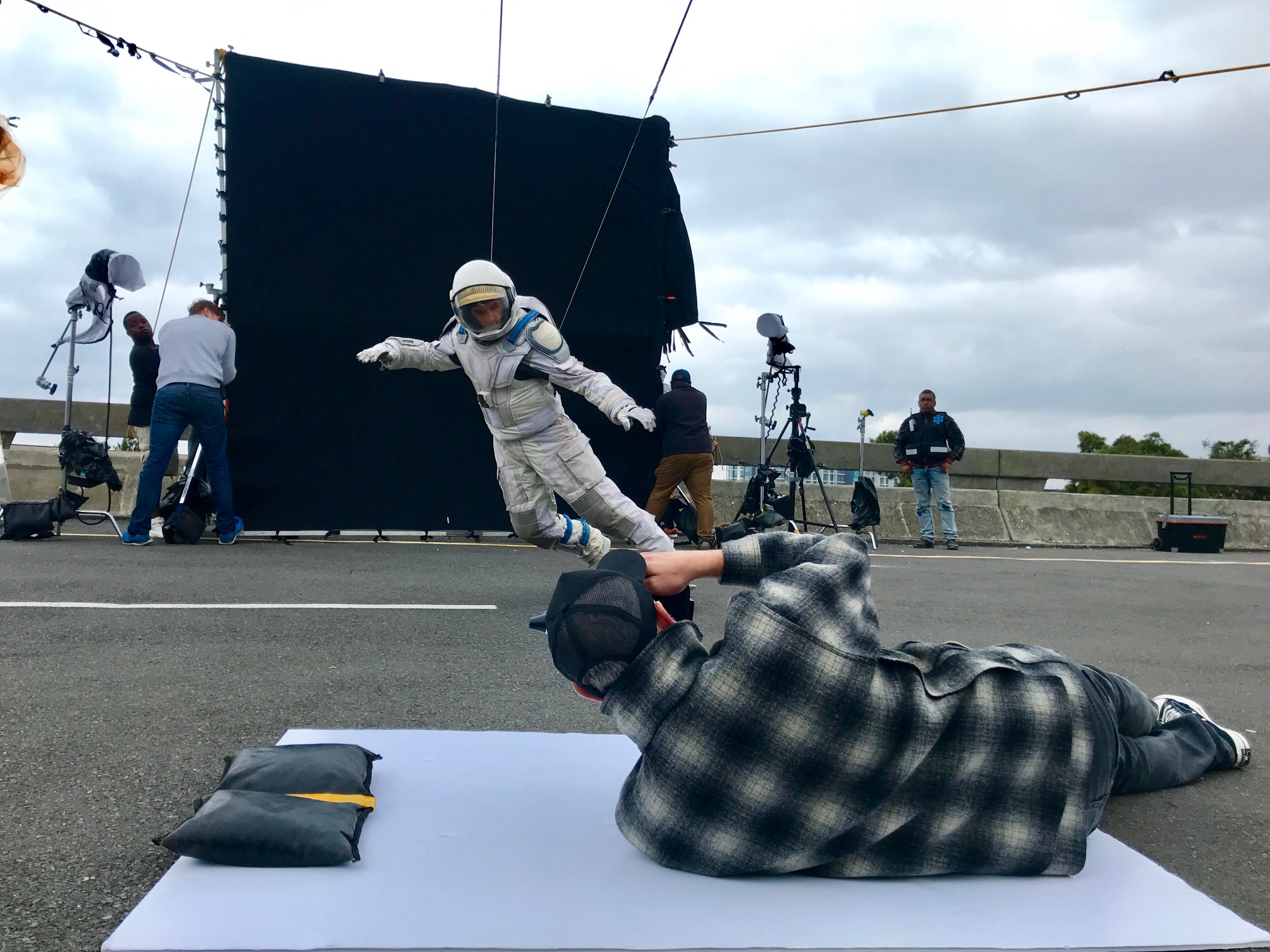 With an initial sequence in place, we cast for a model to represent our hero. Director of Photography for this was Jorge Diéguez, who assembled a fantastic crew, selected equipment and took care of the lighting, matching it meticulously to the sequences already visualised. Set designer Jason Synnott rigged up the car seat with steering wheel construction, and we shot the green screen sequences at our neighbours: Hackney Studios, with on-set VFX supervision and general advice from Gareth Repton.