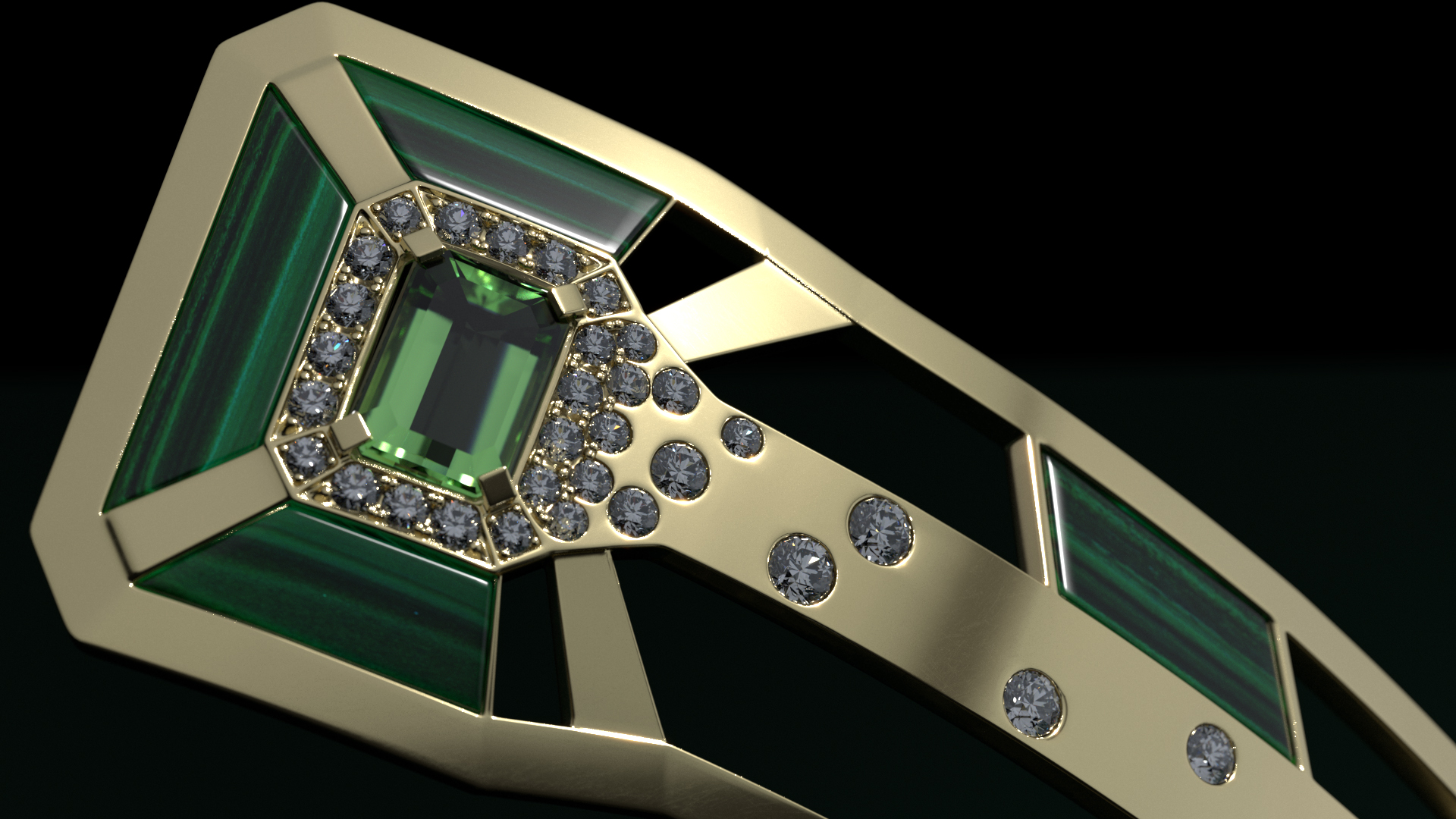 The jewellery was recreated in CGI from the original pieces, with great attention paid to the texturing of surfaces and the properties of the precious stones. Detail is everything…