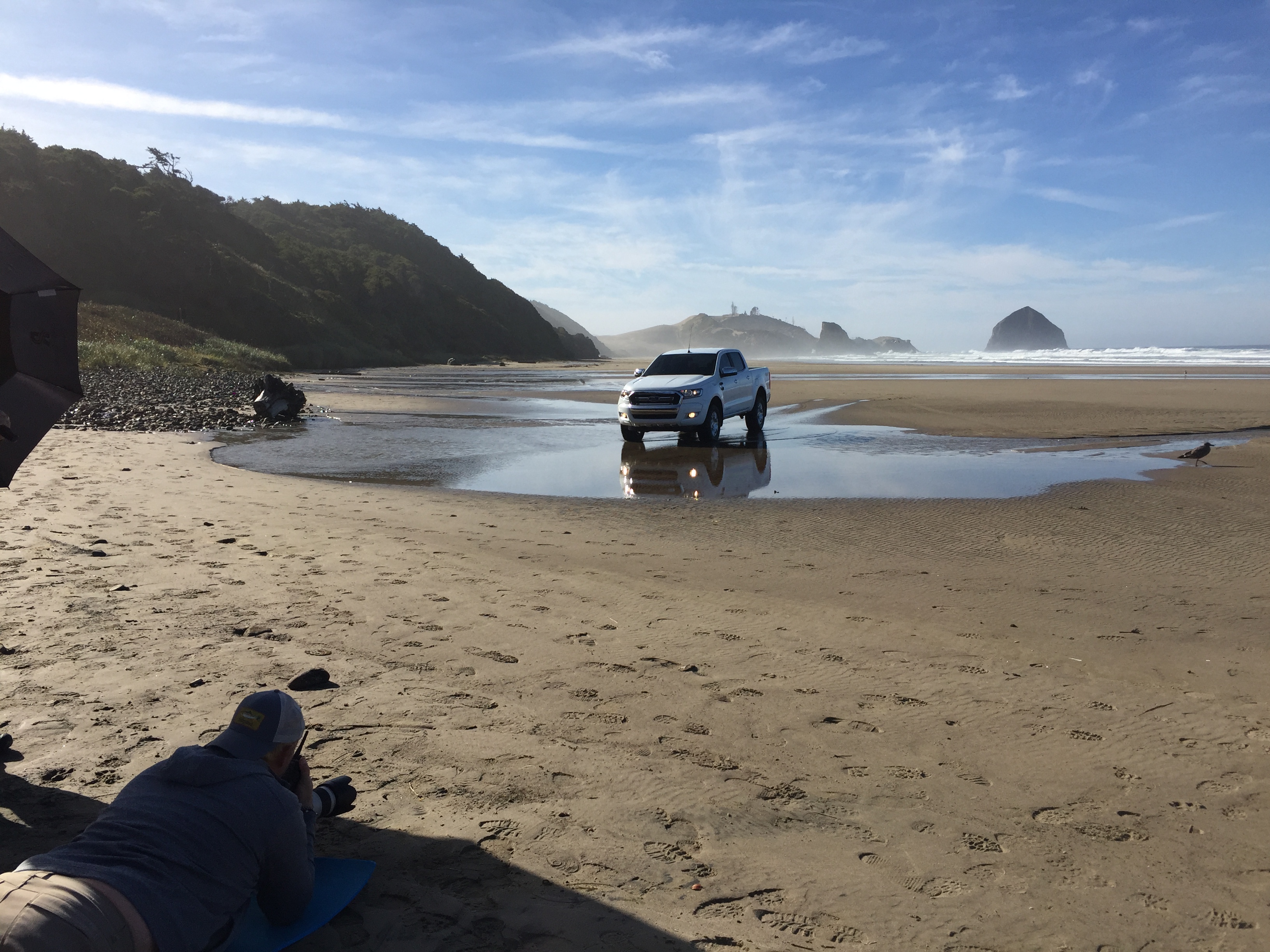 The wintery desert light, in combination with the golden car paint, provided her with a solid foundation for creating the desired look, and a realistic bloom and film grain.